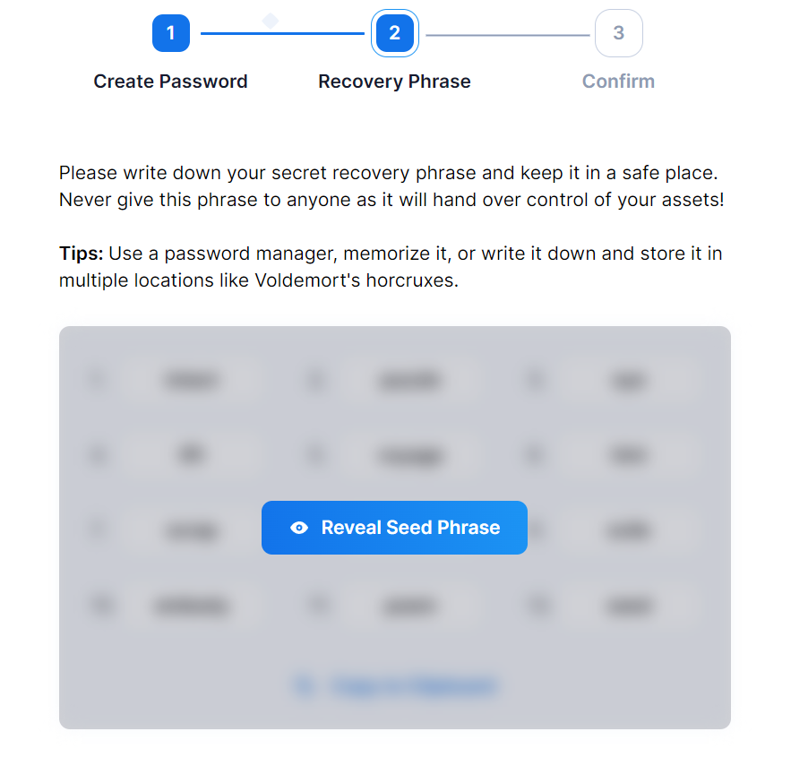 SponsoredCliquez sur “Reveal Seed Phrase” pour révéler votre phrase d’urgence, cliquez ensuite sur “Copy to Clipboard” pour copier votre phrase.