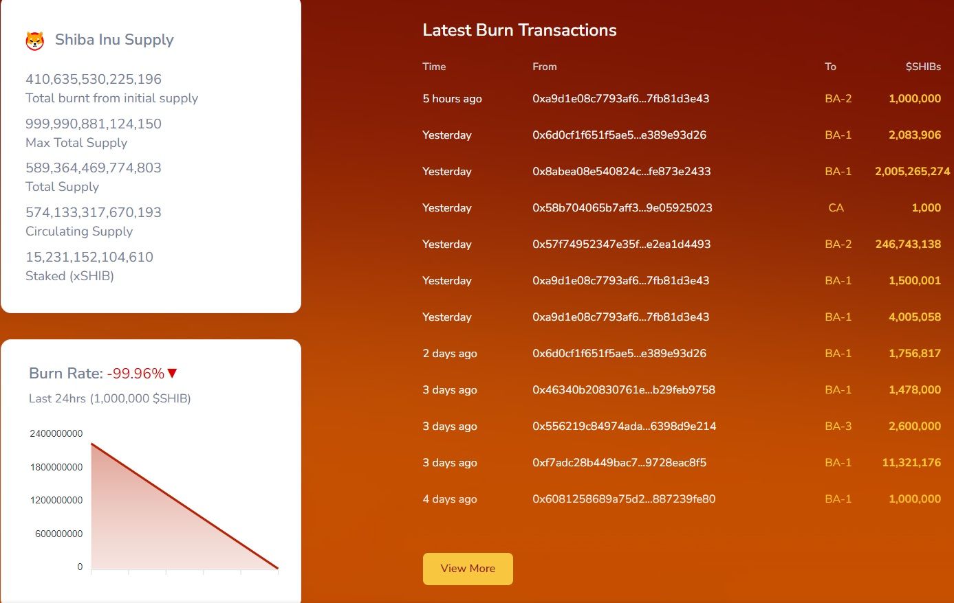 Les transactions sur ShibaSwap revêtent également une certaine importance, puisqu’à partir du DEX, des tokens sont également brûlés. A l’heure actuelle, plus de 74 milliards de SHIB ont été retirés de la circulation. Cette évolution peut être suivie sur le portail même.