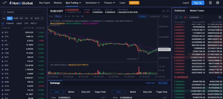 La crypto Shiba Inu est également disponible au trading sur Huobi. Elle peut être échangée contre le stablecoin Tether (USDT). Huobi propose des paiements rapides par carte, ce directement sur la plateforme.
