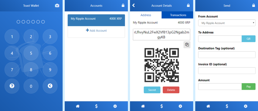 - Toast est open source, non privatif (c’est-à-dire que vous contrôlez vos propres clés privées), simple, et se targue d’être “un portefeuille XRP vraiment multiplateforme, assez simple pour votre grand-mère mais assez sûr pour un banquier suisse”.