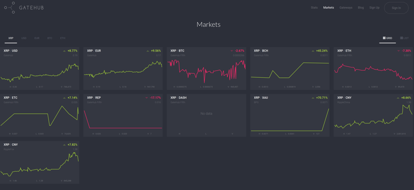 - GateHub prend en charge les paires XRP, USD, EUR, BTC et ETH, il n’est donc pas aussi verbeux que certains échanges, mais il offre également un portefeuille assez efficace pour stocker vos actifs. Il convient de noter que, comme la plupart des échanges, GateHub est un service de garde, de sorte que vous ne possédez pas vraiment votre XRP tant que vous ne l’avez pas retiré de l’échange, mais pour de petits montants et/ou pour des échanges, cela pourrait être la solution idéale pour de nombreux utilisateurs.
