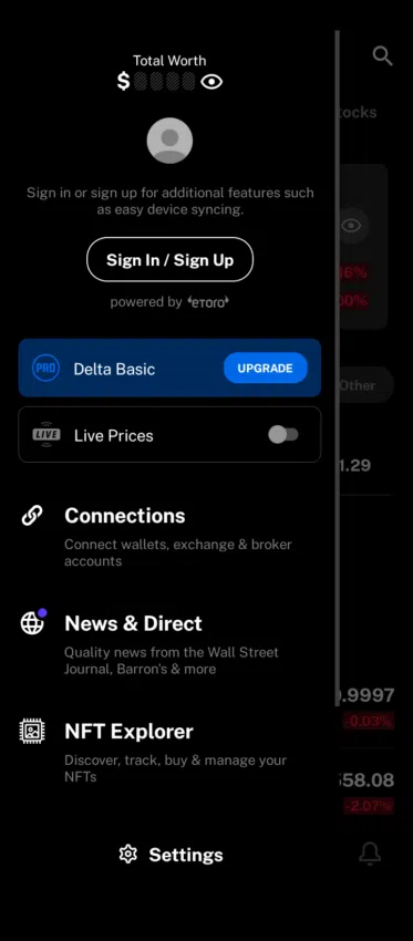 De même, Delta Pro vous permet d’accéder aux données du marché et de surveiller votre portefeuille en temps réel sans avoir à actualiser l’application. De plus, cette version premium vous donne la possibilité de synchroniser jusqu’à cinq appareils et de vous connecter à un nombre illimité d’exchanges, de portefeuilles et de courtiers.