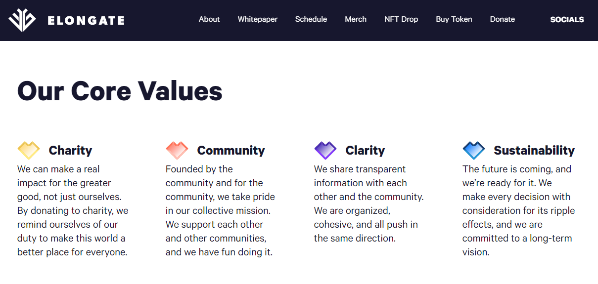 Lorenzo Andree et d’autres personnalités ont rapidement décidé de faire d’ElonGate une cryptomonnaie qui contribuerait à répandre la bienveillance au nom de sa communauté. Andree et son équipe ont ainsi développé un système pour faire don des gains générés par le token à plusieurs organismes caritatifs.
