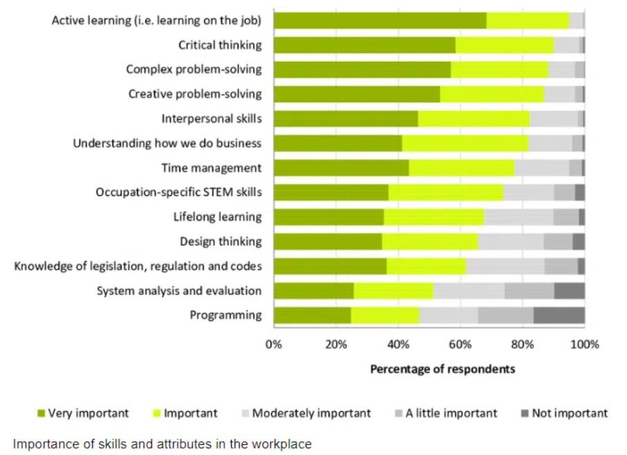 L’Australian Chief Scientist’s Office a chargé Deloitte Access Economics de rassembler les avis d’un échantillon d’employeurs concernant les compétences qu’ils recherchent chez un salarié. Au total, 1 065 individus responsables de 450 000 employés et issus de divers secteurs industriels ont répondu à l’enquête.