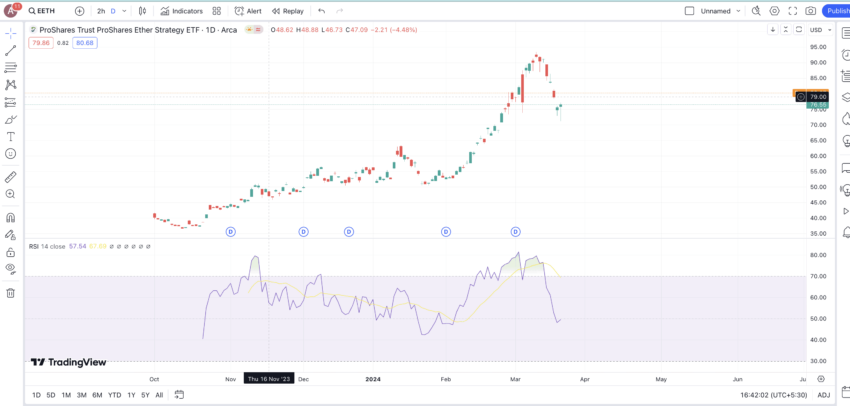 Selon la société de courtage que vous choisissez, vous devez alors payer les frais de trading spécifiques à l’ETF. Voici à titre d’exemple le graphique de trading de ProShares EETH :