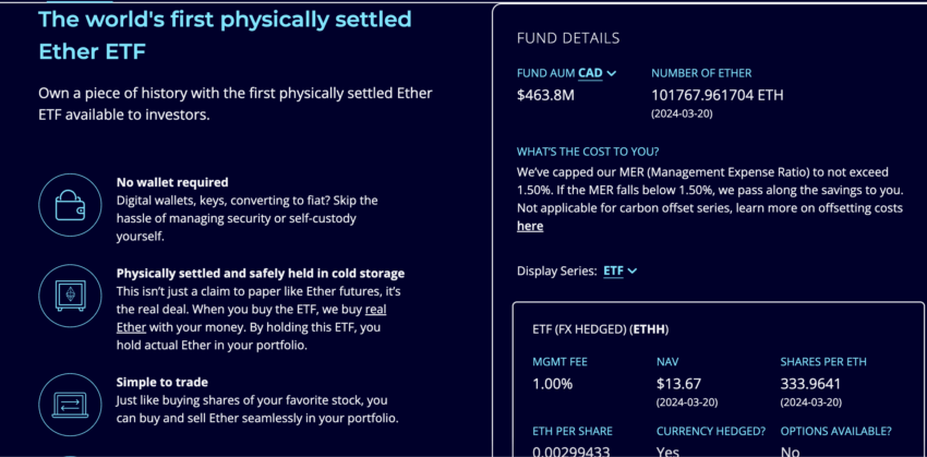 3 : Vous pouvez faire appel à des sociétés comme RBC Direct Investing, TD Direct Investing, Questrade ou encore Interactive Brokers pour suivre et acheter un ETF ETH au comptant.