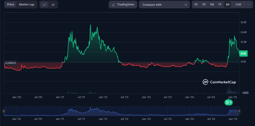 Remarque : Le début de l’année 2025 a été marqué par une certaine croissance haussière du prix du HBAR.