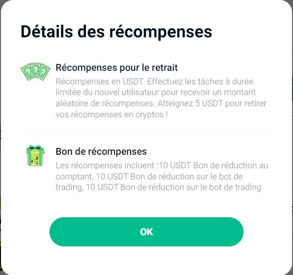 Le bonus Kucoin a sa propre particularité. En effet, puisque chaque étape est susceptible de vous faire gagner une petite somme d’argent. Combinées, les étapes dédiées aux nouveaux utilisateurs peuvent rapporter plus gros, avec parfois près de 100 USDT par “étape” complétée.