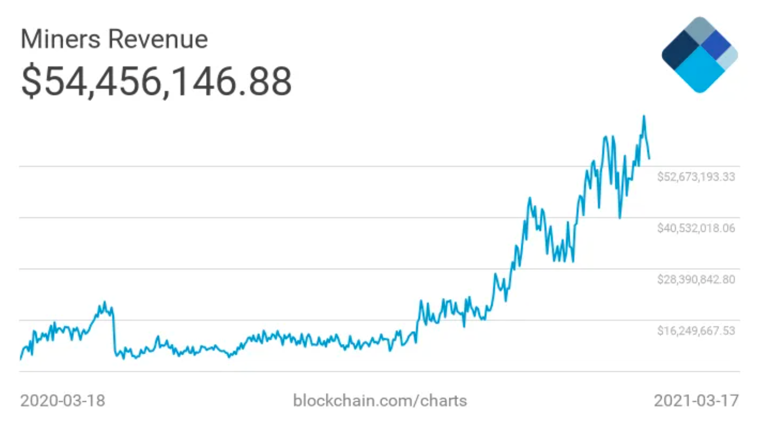 En conséquent, le cours de Bitcoin a franchi de multiples zones de résistances, ce presque tous les mois. Cela crée une rare fenêtre d’opportunité pour les mineurs, reflétant leurs revenus records en février 2021.