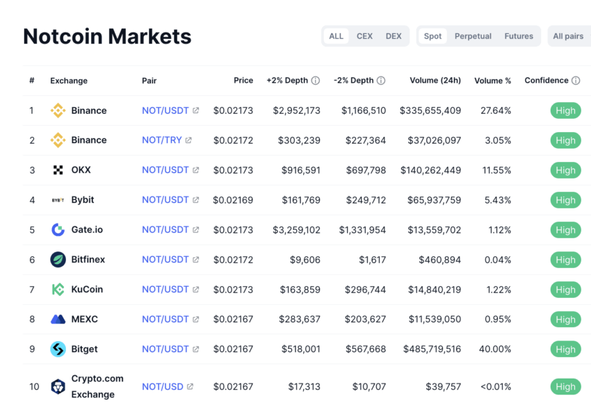 – Le volume de ses paires d’échange représente plus de 51 % du volume de trading de NOT.