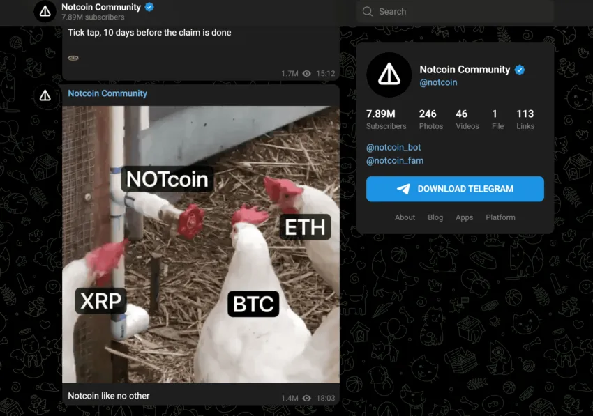 - Q1 2024 : Le bot Telegram de Notcoin a été lancé publiquement et l’acquisition par les utilisateurs a commencé, gagnant rapidement en traction parmi les internautes de Telegram.