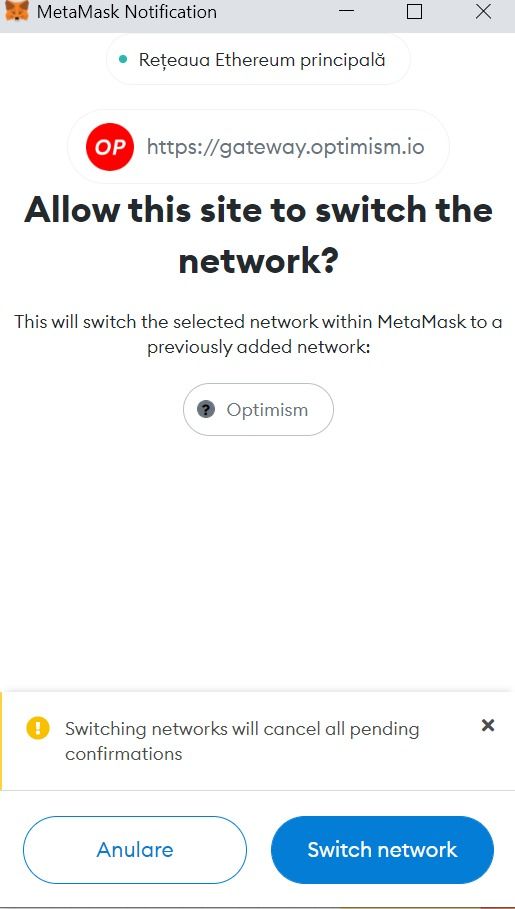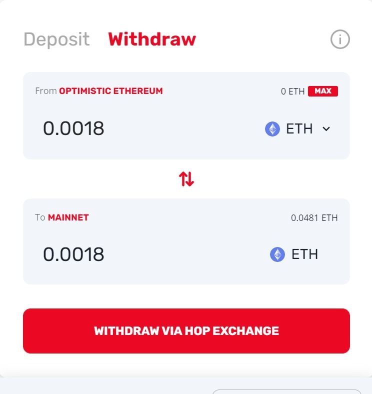Pour cela, vous devez confirmer le changement de réseau à partir de votre portefeuille. Le processus de retrait sera effectué via Optimism ou Hop Exchange.