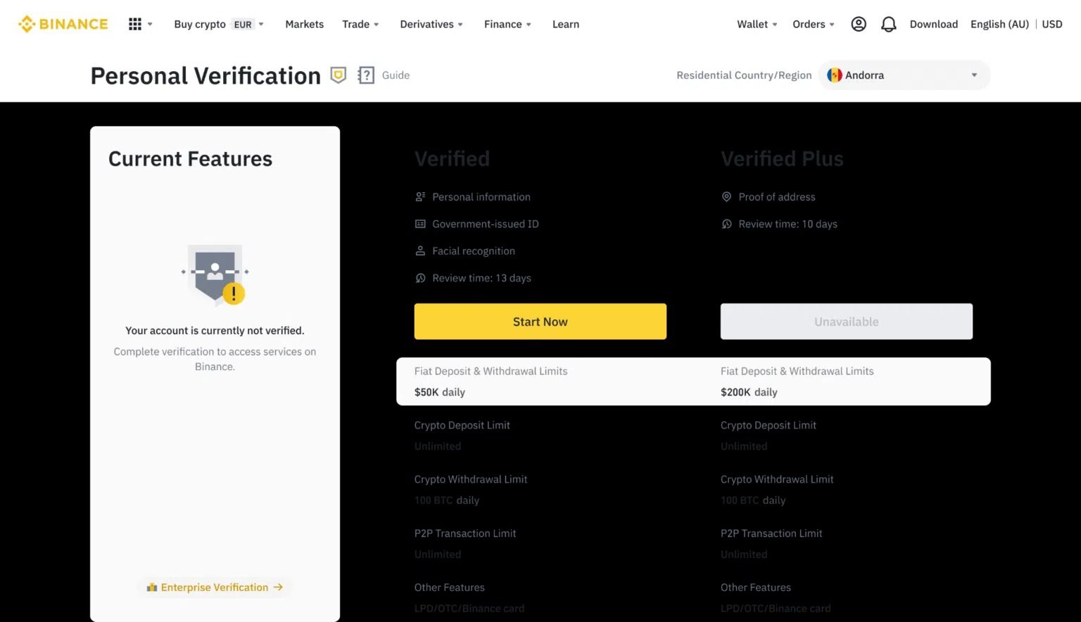 Pour activer les achats par carte de crédit et de débit sur Binance, vous devez suivre le processus de vérification d’identité.