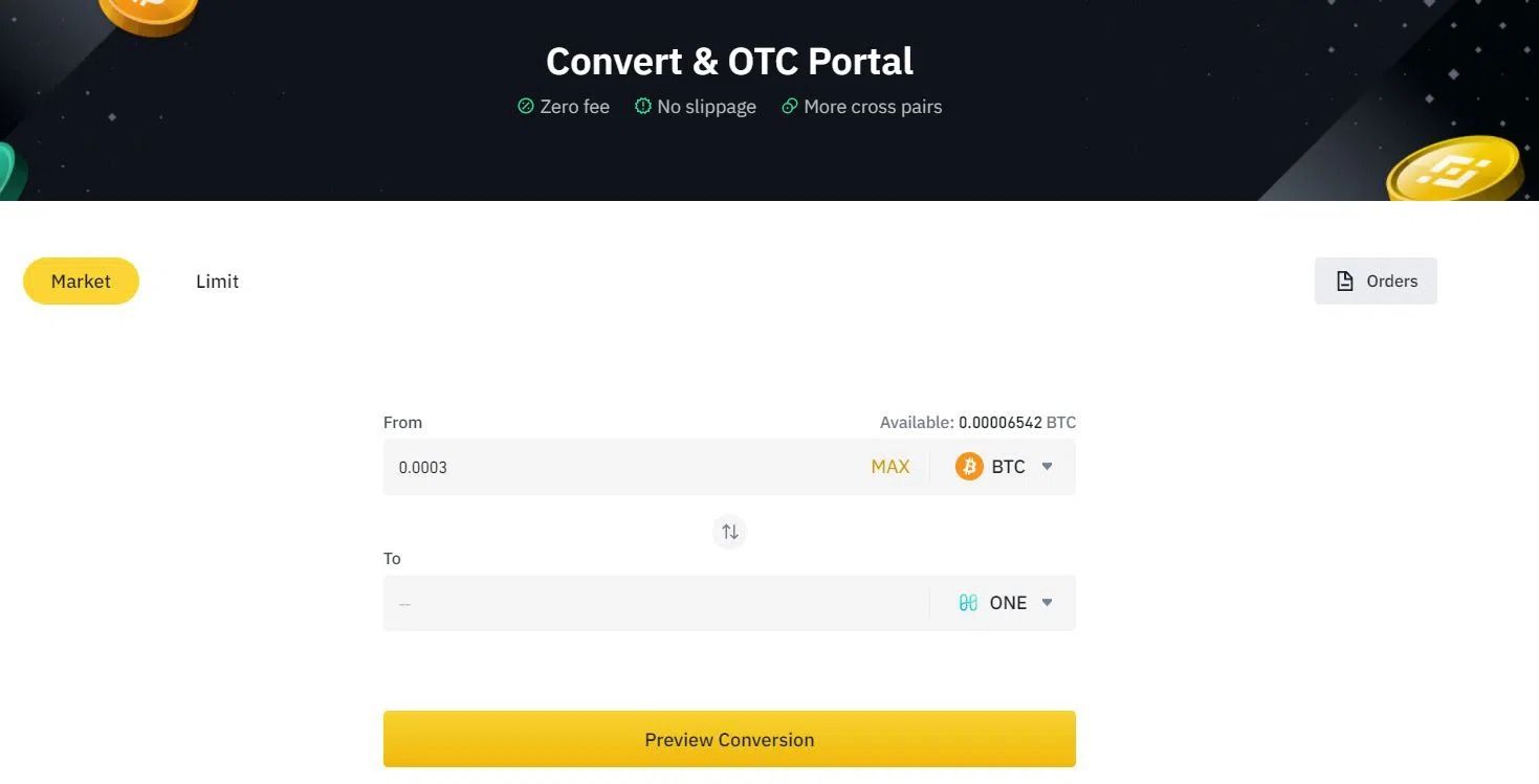 Une fois que vous êtes prêt, cliquez sur “Preview Conversion” pour vérifier le nombre exact de tokens ONE que vous obtiendrez en échange de vos BTC. Ensuite, cliquez sur “Convert” lorsque vous êtes prêt à convertir et à acheter des tokens Harmony ONE.