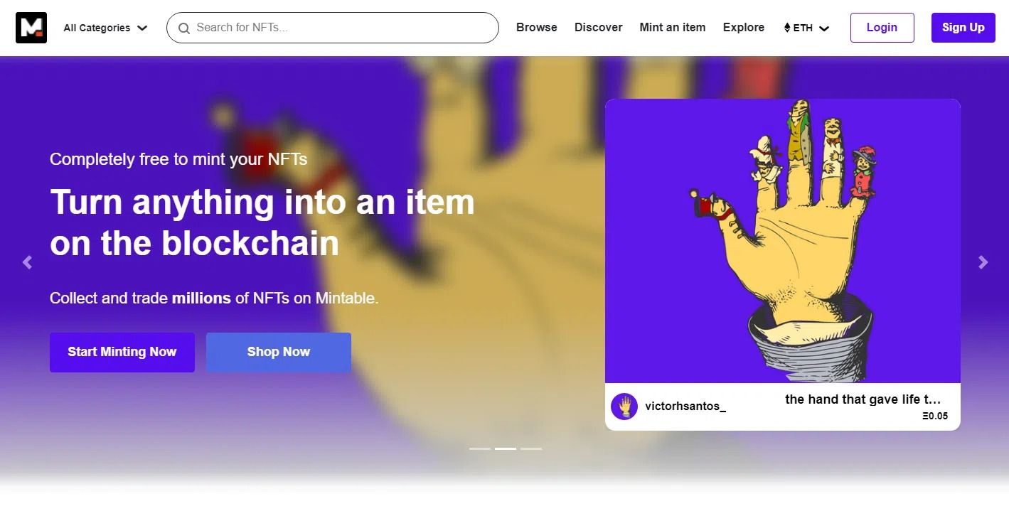 Mintable est une plateforme NFT sans frais de gaz où vous pouvez transformer vos mèmes, fichiers audio ou vidéo en NFT. La marketplace est basée sur les blockchains Ethereum et Zilliqa, et vous avez besoin d’un portefeuille MetaMask pour vous y inscrire. De plus, à chaque fois que vous achetez un NFT, Mintable vous récompense avec des tokens MINT.