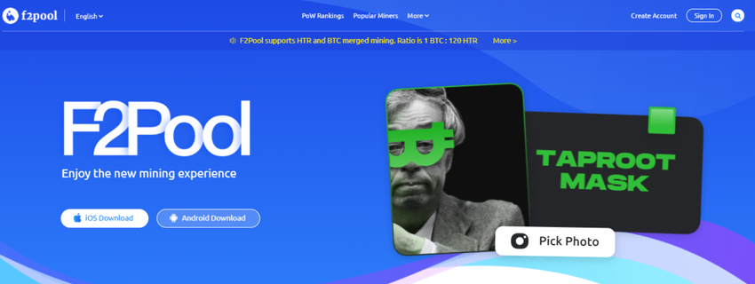 - L’inscription sur F2Pool est assez facile et ne requiert qu’une adresse de portefeuille Ethereum et les informations de connexion traditionnelles. Une fois que vous avez configuré votre compte, vous pouvez télécharger l’application mobile de la plateforme sur iOS ou Android pour voir votre taux de hachage, vos gains et votre revenu quotidien moyen.