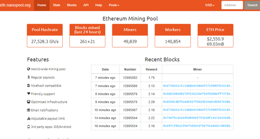 NanoPool est l’un des meilleurs pools d’ETH, et l’un des plus connus. Il est idéal pour les nouveaux utilisateurs, car il prend en charge un taux de hachage inférieur à ce que d’autres peuvent exiger, par exemple.