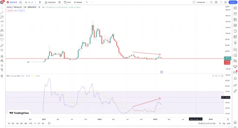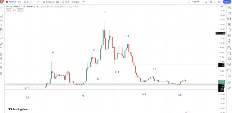 Passons maintenant à l’analyse du graphique hebdomadaire afin de déterminer les tendances majeures d’AVAX.
