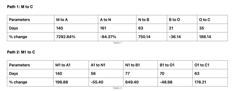 Nous allons maintenant calculer la distance et la variation de prix entre les points M à C et M1 à C afin de créer des ensembles de données pour notre modèle de prédiction AVAX.