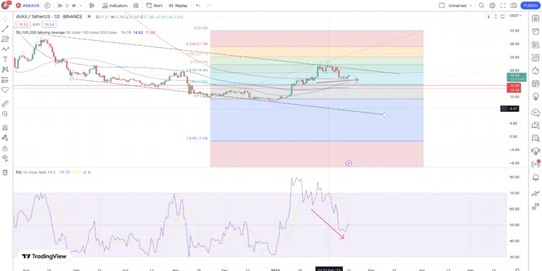 Avant d’établir des prédictions pour les prochaines années, voyons tout d’abord ce que réservent les prochains jours à la crypto AVAX.