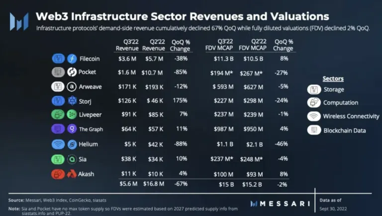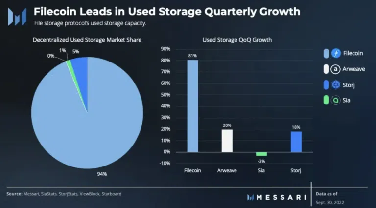 En termes de parts de marché, cependant, Filecoin est toujours en tête du peloton avec une part de 81 % de l’écosystème du stockage décentralisé au troisième trimestre.
