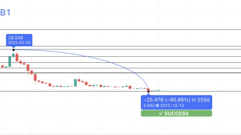 Tout d’abord, FIL est actuellement en baisse de 98,63 % par rapport à son sommet historique de 237,24 $, atteint en avril 2021. Ainsi, il est très proche de son creux historique de 1,83 $, qui a été enregistré en août 2019.