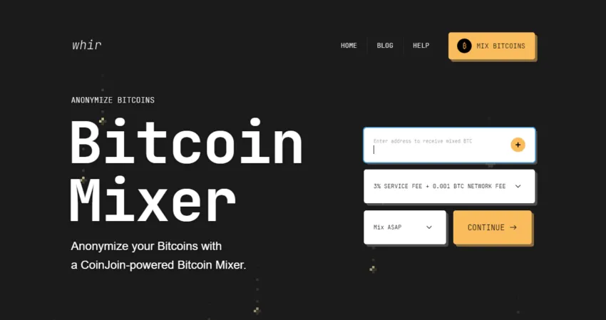 Whir facture des frais de service fixes de 1 % (avec des frais de réseau supplémentaires) et propose des options pour distribuer les bitcoins mélangés à des adresses multiples, ce qui complexifie davantage la traçabilité des transactions. Whir peut être utilisé sans que les utilisateurs soient obligés de s’enregistrer et supprime tous les registres de transactions dans les 24 heures afin de préserver la confidentialité de l’utilisateur.