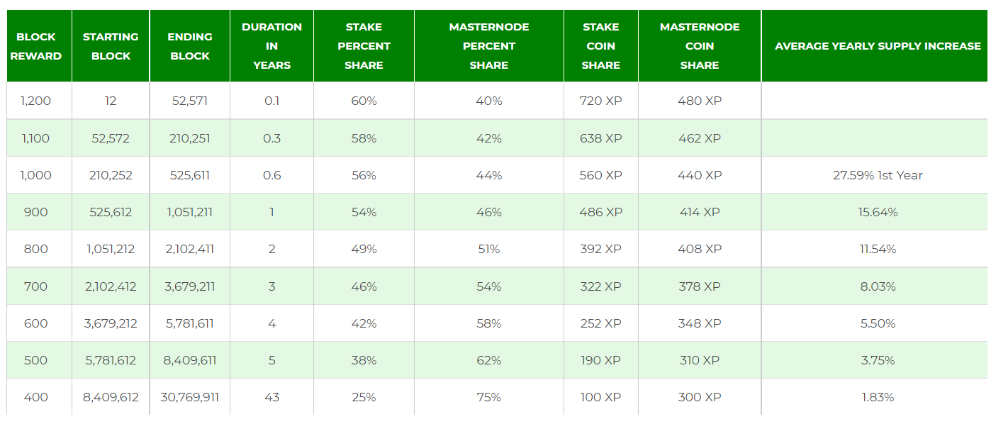 Sponsored SponsoredAu lieu d’introduire un mécanisme de combustion des tokens, les dirigeants du projet ont décidé de fixer les frais de transaction du staking et des masternodes à 40% et 60% respectivement, ce pour toute la durée de vie de la blockchain. De même, la garantie des masternodes a été remplacée par un dépôt de 500 000 XP Coins.