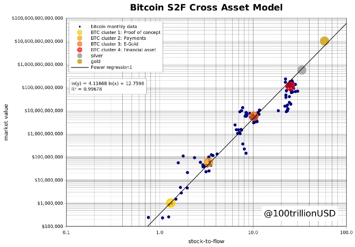 En utilisant le modèle S2FX, il serait plus facile de trouver le ratio S2F de BTC pour les prochaines années. Les points de données et l’analyse de régression aident ont joué un rôle majeur dans le développement du modèle S2F cross-asset.