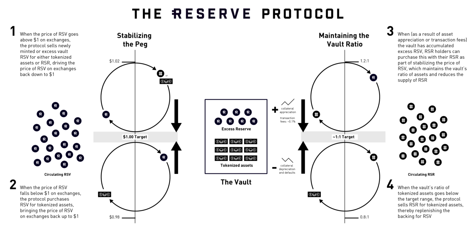 Sponsored SponsoredÉtant lié à RSV, RSR Coin garantit également la stabilité du prix en utilisant la tokenomique unique de Reserve. Pour ce faire, il utilise un système d’arbitrage pour maintenir le prix du RSV à 1 $.