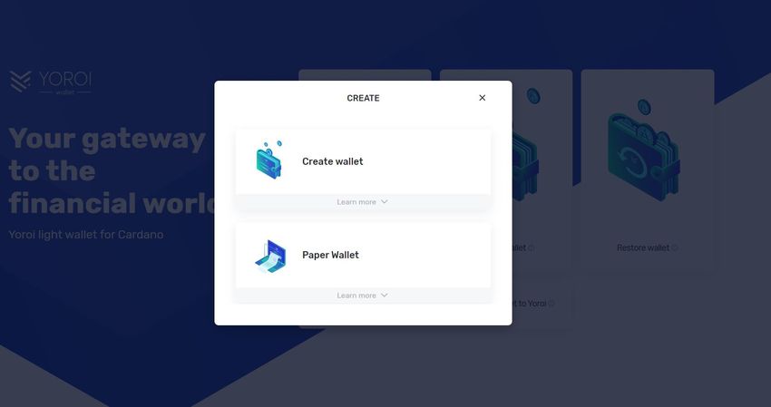 Si vous n’avez pas de fonds, choisissez “Créer un portefeuille”. Choisissez l’option Cardano.