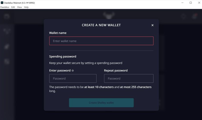 Vous devez alors définir le nom de votre portefeuille ainsi qu’un mot de passe de dépense afin de le sécuriser.