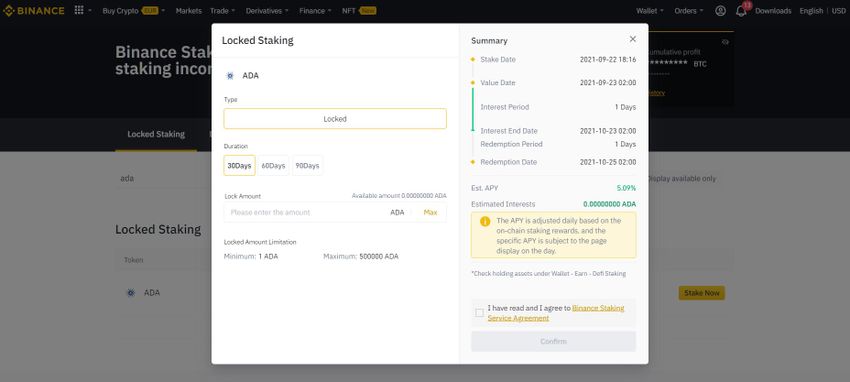 Vous devrez avoir des ADA sur votre compte Binance avant de pouvoir commencer à les y placer en staking.