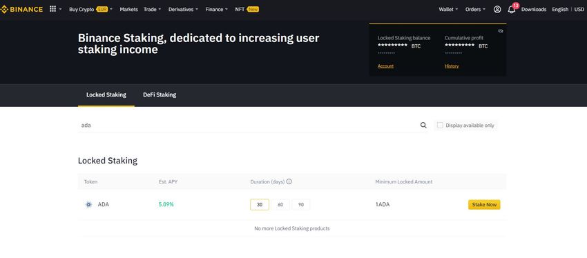 Une fois sur Binance Staking, recherchez l’actif ADA.