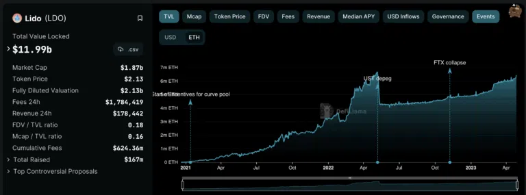De plus, Lido représente 73,92% de la TVL des LSD ( liquid staking derivatives ou dérivés de staking liquide) d’Ethereum.