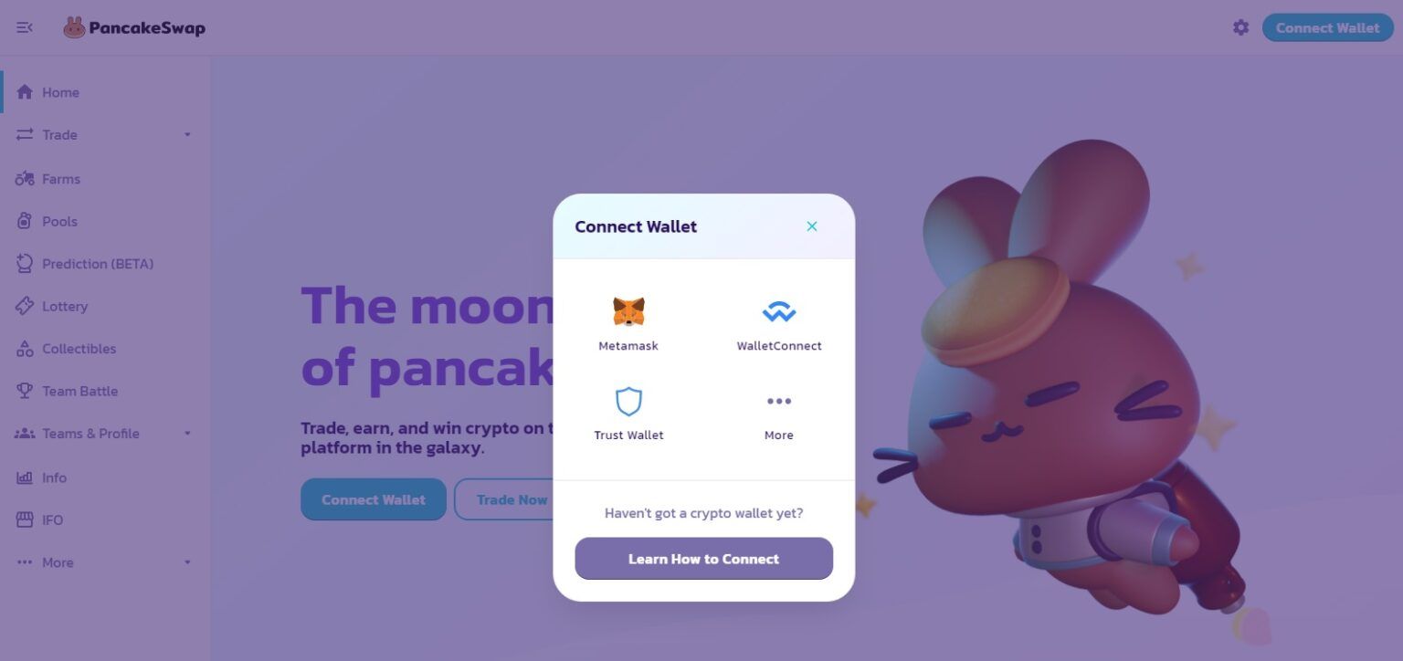 Après avoir ouvert Trust Wallet, connectez-le à PancakeSwap pour pouvoir voir vos tokens BEP20 sur le réseau PancakeSwap et commencer à les échanger ou à les placer en staking.