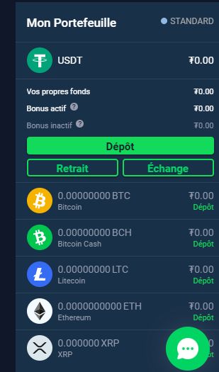 Vous avez également accès à une bulle de chat, laquelle s’ouvre sur une fenêtre de dialogue de support client. Sur une plateforme de qualité, le temps de réponse ne devrait pas être très long, mais dépendra évidemment de la charge de travail de l’équipe. En haut à gauche, vous pourrez passer de la fenêtre de trading à la fenêtre d’échange, mais vous n’aurez pas encore à trop vous préoccuper de cette option. Sur la droite, vous disposez de l’onglet de messages, de la sélection de langues et des options de votre profil, lesquels s’avèrent tous assez classiques. Enfin, de nombreuses plateformes dont Stormgain offrent l’option d’achat par carte de crédit, laquelle est généralement visible sur l’écran principal.