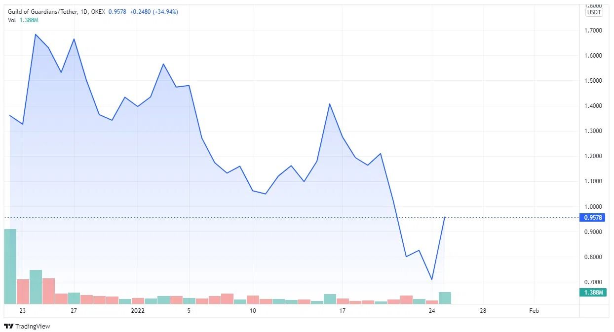 Le 22 décembre 2021, GOG a atteint un sommet historique de 2,81 $. Bien sûr, comme le jeu n’est pas encore sorti, le prix de son token a considérablement baissé par rapport à son record. Cependant, en raison de la popularité du genre ARPG (jeu de rôle et d’action), on s’attend à ce que Guild Of Guardians ait du succès. Notons que le jeu est compatible avec les appareils Android et iOS ; il reste donc à voir comment la communauté réagira à son lancement prévu pour ce trimestre.