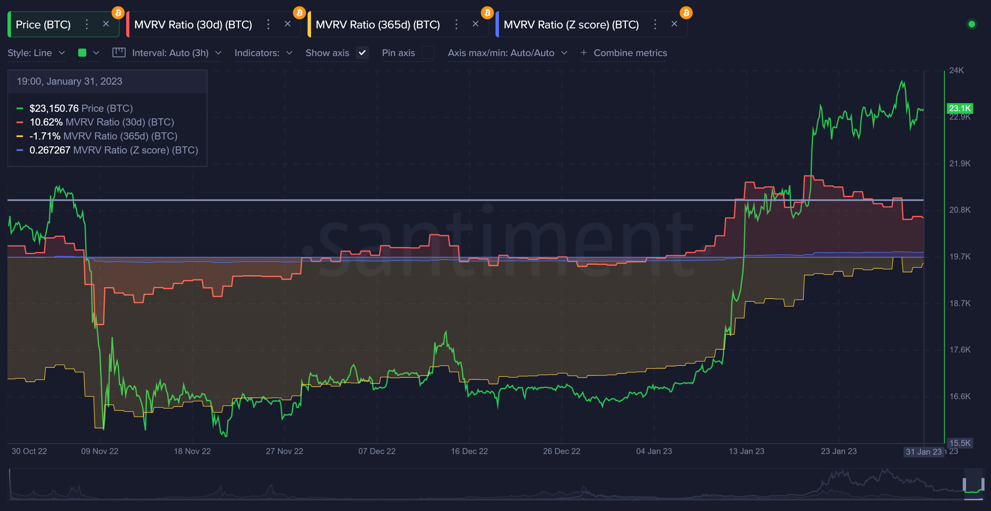 Toutefois, il est probable qu’un niveau élevé d’euphorie soit atteint prochainement alors que janvier a été l’un des mois les plus performants de l’histoire de Bitcoin après 12 ans d’existence. Avant de voir ce niveau d’euphorie, comparable à 2020 et 2021, il semble possible de prolonger la hausse sur Bitcoin et le marché des cryptomonnaies.