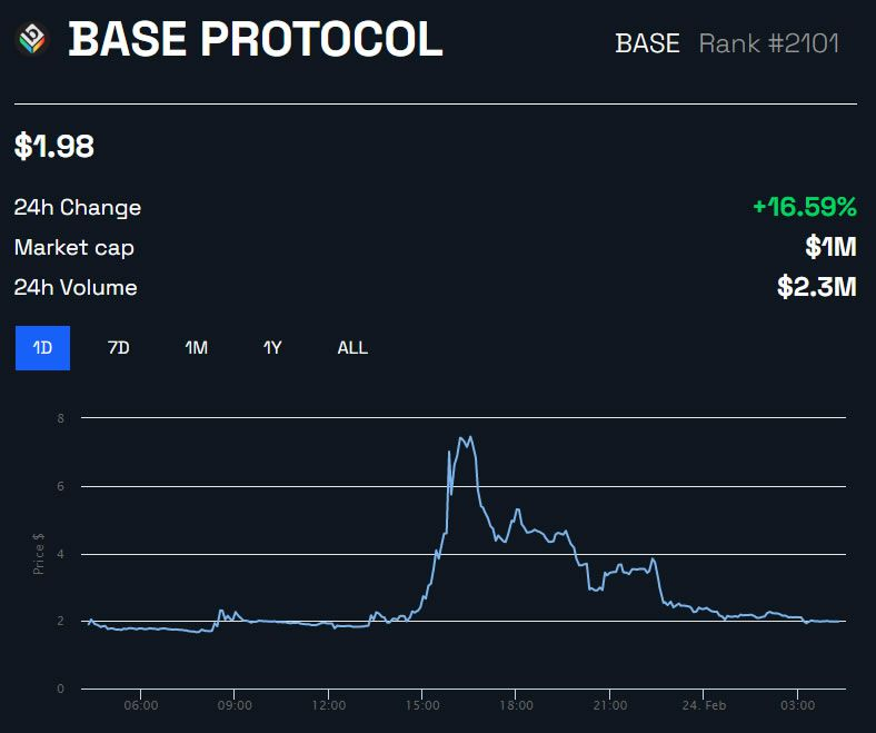 SponsoredEn effet, le nouveau protocole L2 partage son nom avec la crypto BASE. Cette dernière est un altcoin qui n’a aucun lien avec Coinbase ni avec sa nouvelle plateforme. Pourtant, des centaines de traders se sont rués sur le token. Nombreux ont été ceux qui ont cru qu’il s’agissait du jeton du réseau L2 de Coinbase.