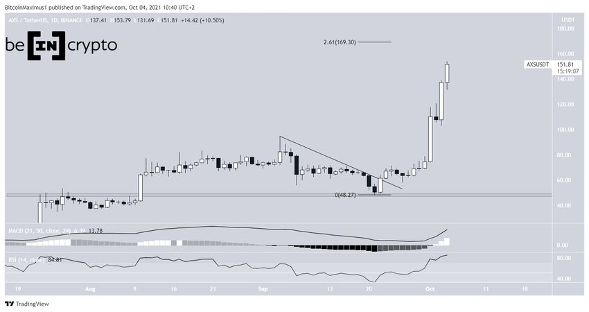 Le mouvement de hausse du cours s’est considérablement accéléré le 1er octobre avec un important chandelier haussier. Le 4 octobre, le token a atteint un nouveau sommet historique de 153,79 $.
