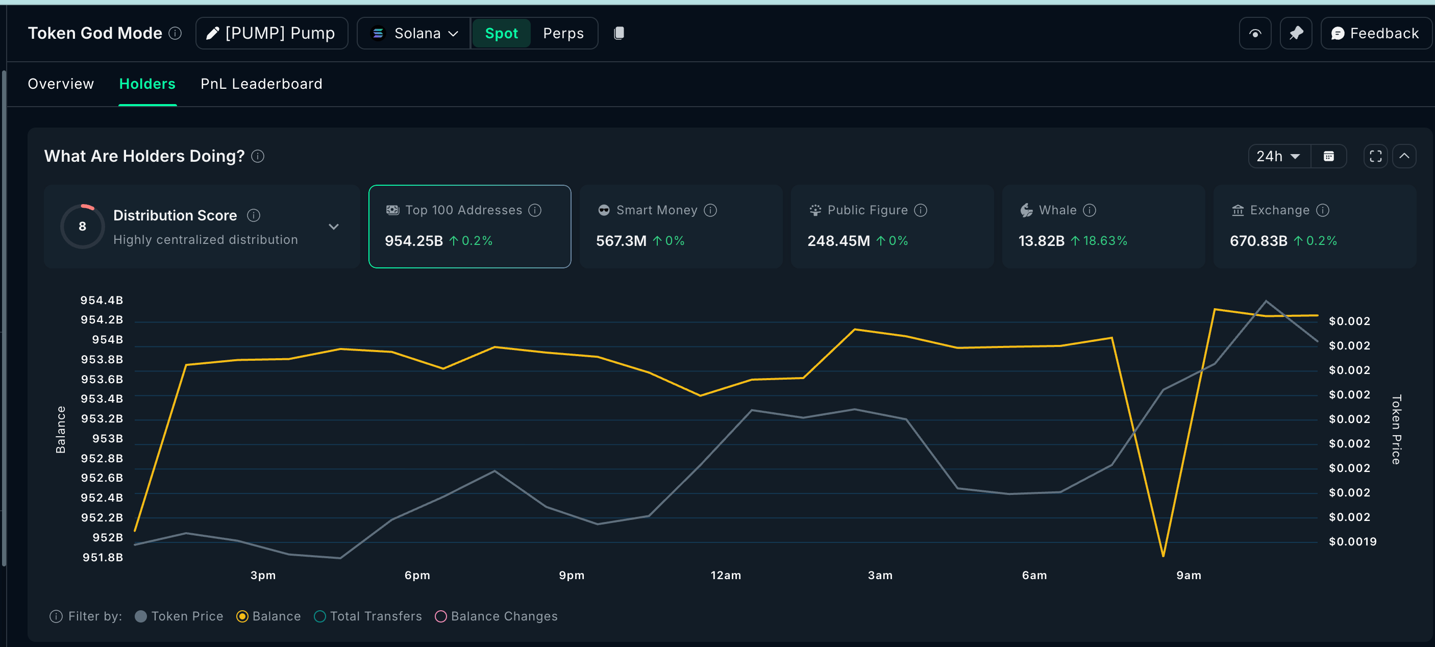 Pump.fun (PUMP) attire particulièrement l’attention des baleines crypto. Les données on-chain indiquent une hausse brutale de l’accumulation par les gros détenteurs au cours des dernières 24 heures, avec une augmentation de 18,63 % de leurs avoirs, portant le total à 13,82 milliards de tokens. Cela représente environ 2,17 milliards de PUMP accumulés en une journée, soit près de 4,34 millions de dollars au prix actuel.