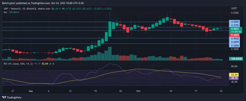 Si l’hypothèse susmentionnée se trouve annulée et que les bulls prennent le dessus, XRP pourrait atteindre la prochaine résistance, à savoir l’important seuil psychologique de 0,50 $.