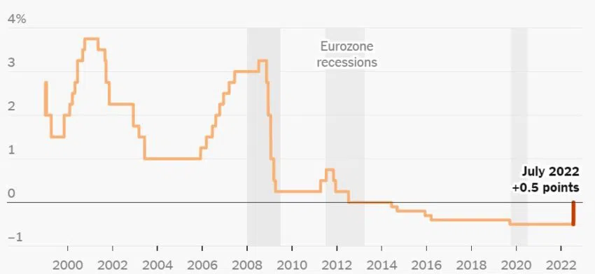 Cette mesure met fin à l’expérience des taux d’intérêt européens inférieurs à 0 et entame un processus dans lequel la BCE espère normaliser ses taux dans les prochaines sessions.