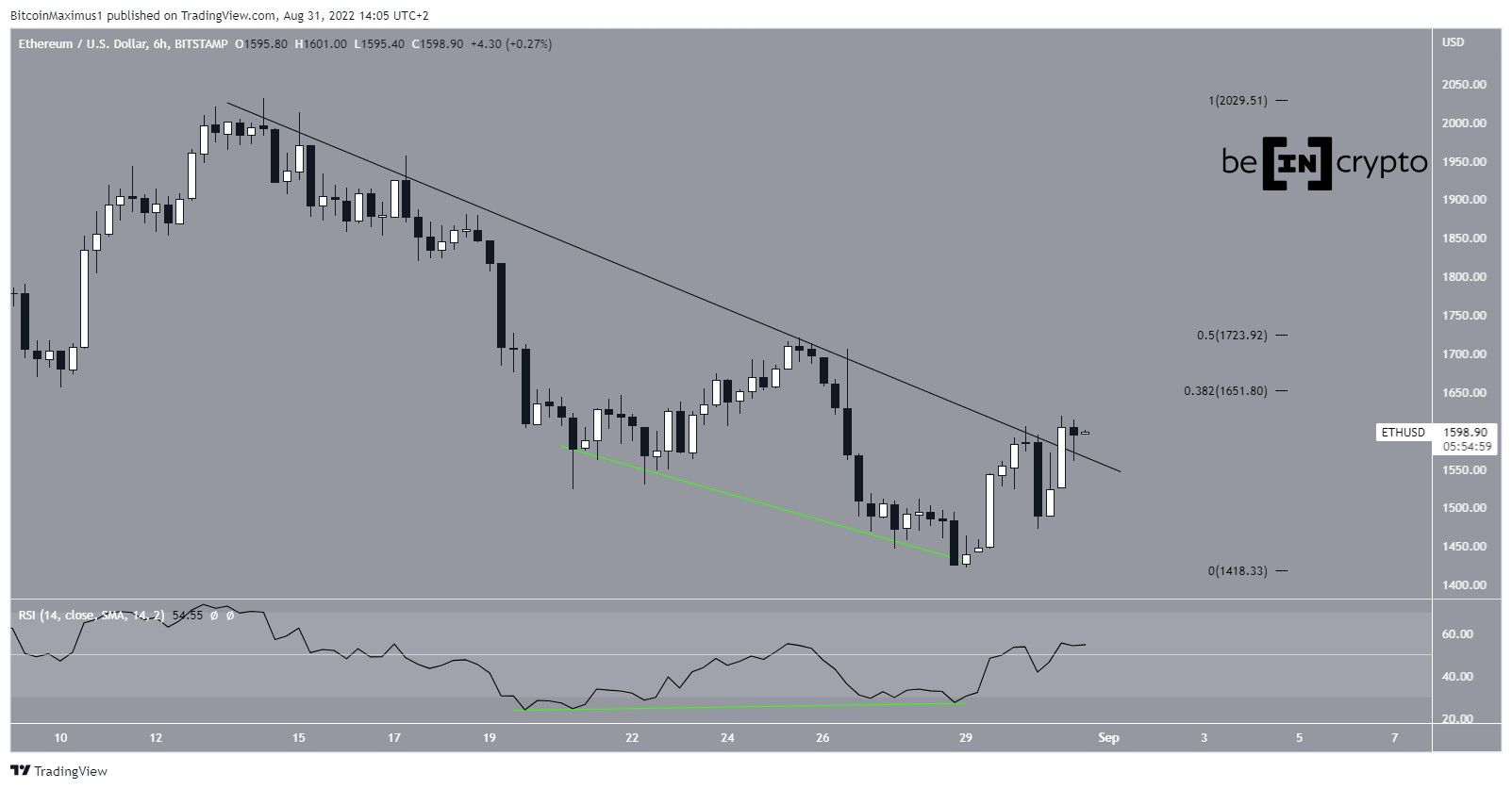 SponsoredAprès avoir généré une divergence haussière, le cours de la crypto ETH a dépassé une ligne de résistance descendante. Sa zone de résistance la plus proche se situerait maintenant entre 1 650 et 1 725 dollars.