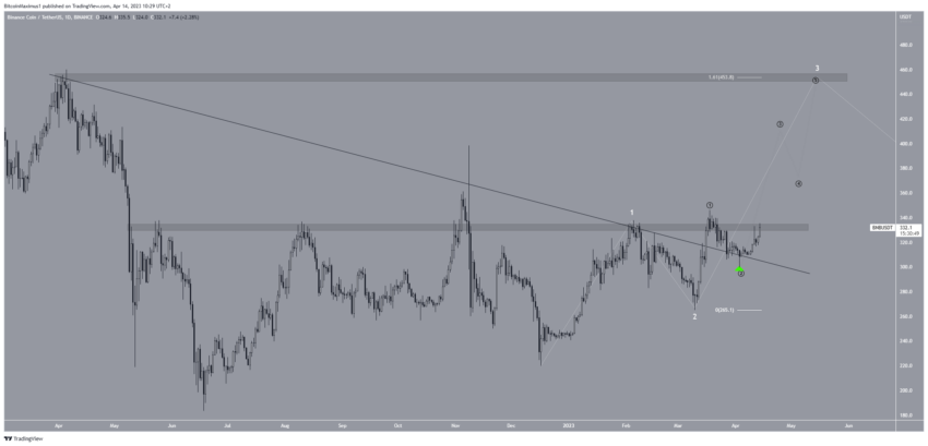 L’objectif le plus probable pour un sommet serait de 453 $. Ce niveau de prix représente également une zone de résistance horizontale. Ainsi, si le cours BNB atteint ce niveau, la première et troisième vague auront un ratio de 1:1,61.