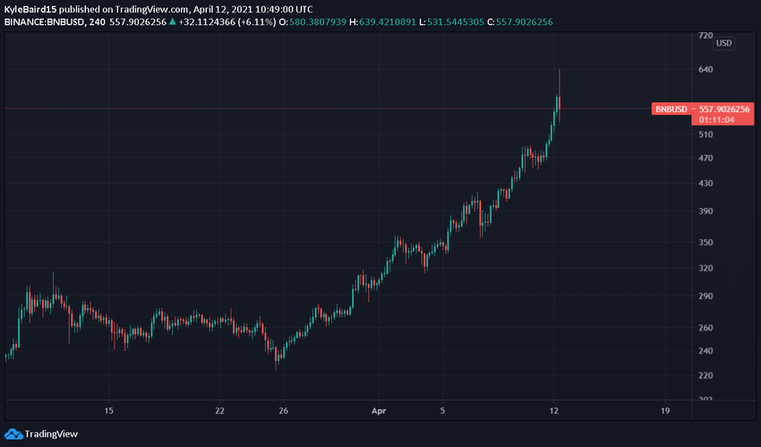 Binance Coin a été l’un des altcoins les plus performants jusqu’à présent en 2021. Il a ouvert la nouvelle année à 37$, mais a depuis atteint un nouveau sommet historique de 641$ le 12 avril. Cela équivaut à un gain massif de 1 621%.