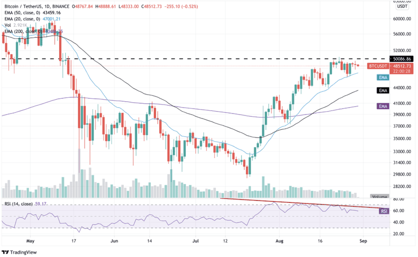Selon Binance, Bitcoin a atteint la semaine dernière un nouveau sommet sur 3 mois à 50 500 $, dépassant une résistance clé à 50 000 $. Cependant, cette percée a été de courte durée car les signes haussiers du BTC semblent avoir perdu leur élan ces derniers jours. Bitcoin s’est consolidé sous la barre des 50 000 $ au cours de la dernière semaine de négociation, maintenant sa capitalisation boursière juste au-dessus de 900 milliards de dollars.
