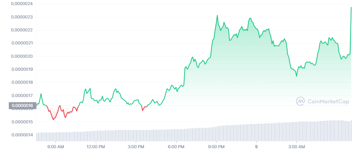 Le jeton s’échange désormais à 0,000053 $, avec une hausse impossible à rater si l’on observe le graphique du cours.