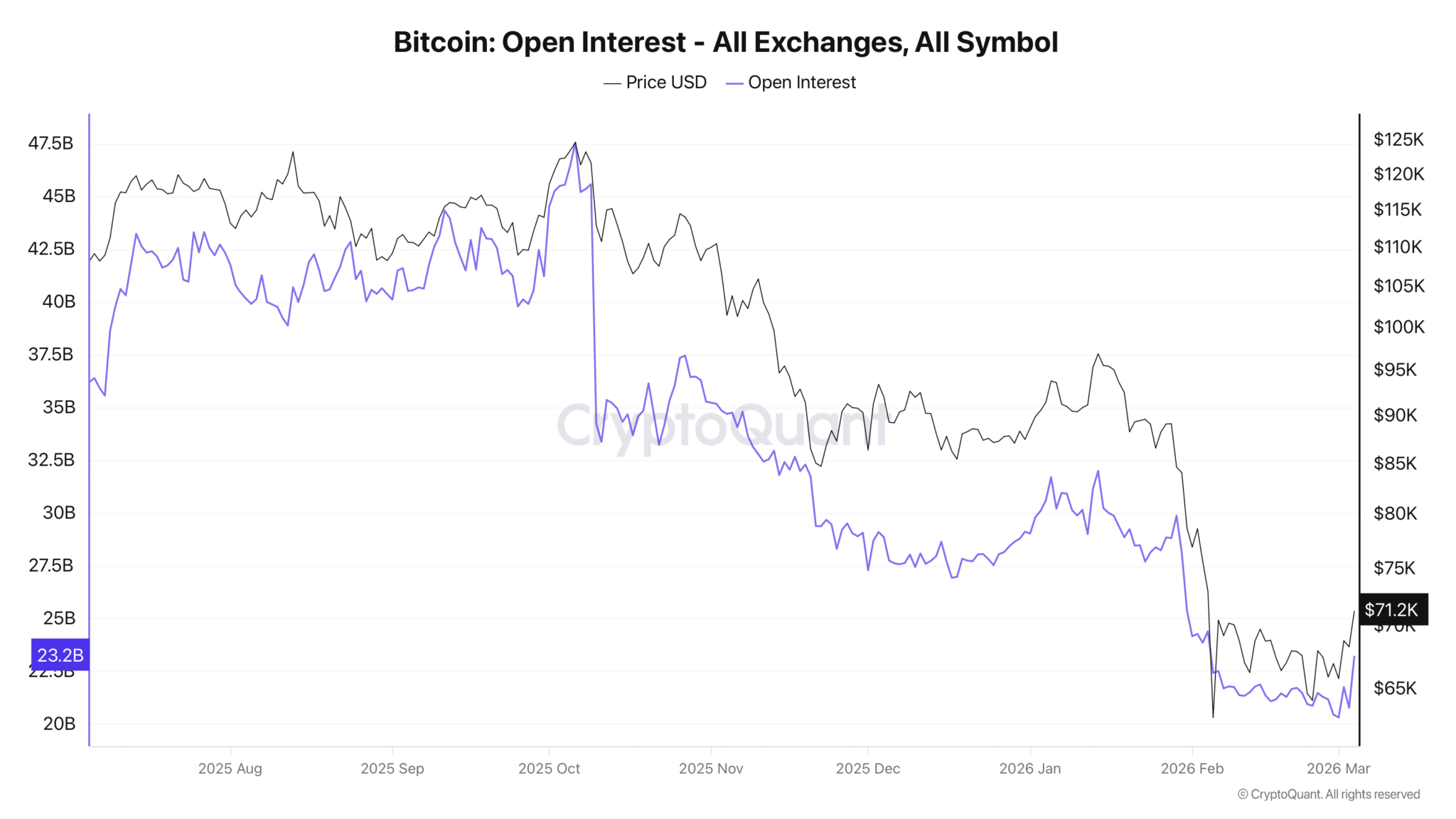 Sur les marchés dérivés, l’intérêt ouvert s’est réduit de 47,5 à 23,2 milliards de dollars, ce qui ramène la spéculation à des niveaux plus sains. Le taux de financement reste négatif, preuve d’un excès de positions vendeuses, mais le ratio Taker Buy/Sell à 1,16 témoigne d’une certaine offensive des acheteurs agressifs.